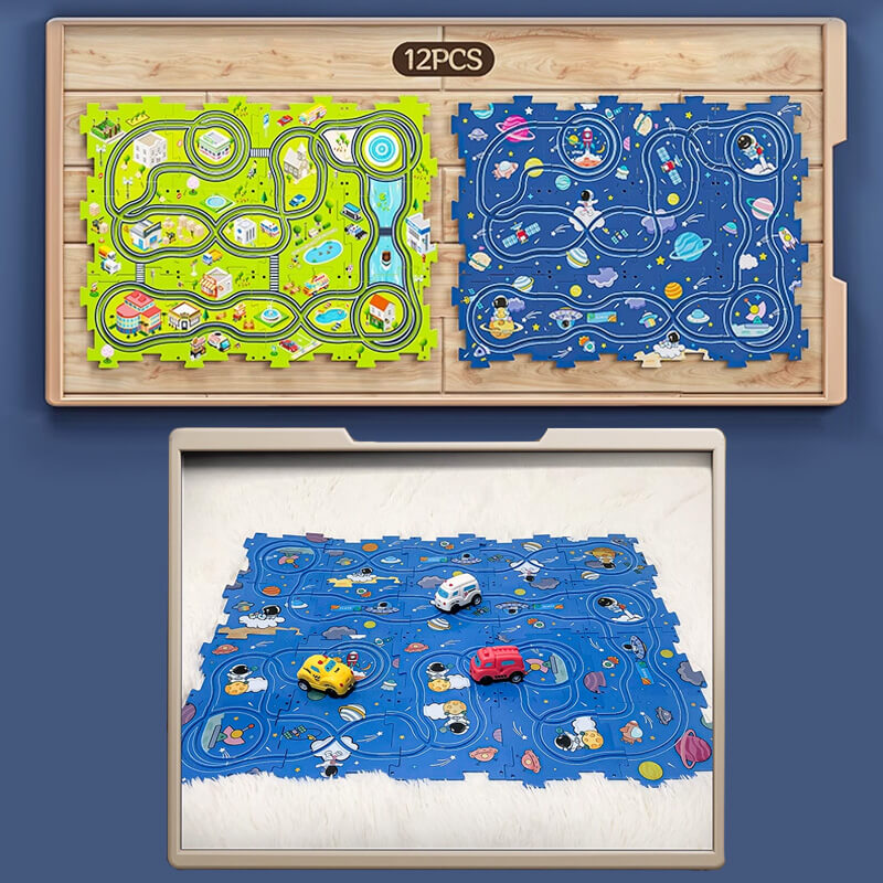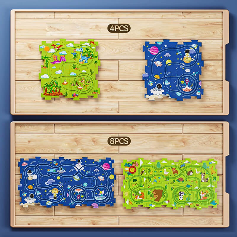 Puzzle są wykonane z wysokiej jakości tworzywa ABS i mają gładkie krawędzie i rogi bez ostrych krawędzi, dzięki czemu są bezpieczne dla dzieci. Samochód automatycznie porusza się po torze, co jest zabawne i trzyma dzieci z dala od elektroniki.