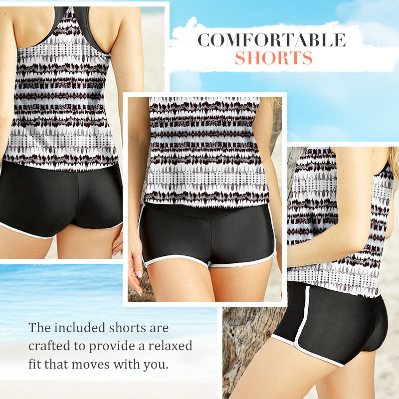 WYGODNE SZORTY – Dołączone szorty zostały zaprojektowane tak, aby zapewnić swobodny krój, który dopasowuje się do ruchów ciała. Wykonane z miękkiego, elastycznego materiału, zapewniają pełne pokrycie i są idealne na aktywne dni na plaży lub do noszenia na co dzień, zapewniając komfort bez utraty stylu.