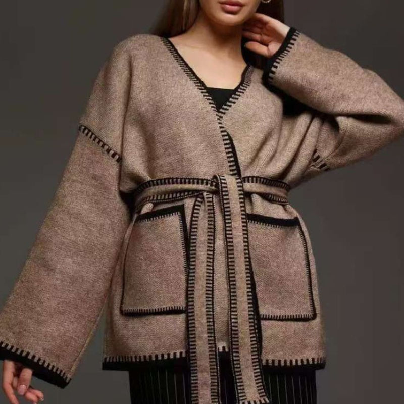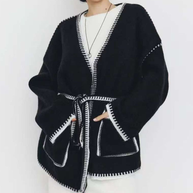 Zawartość opakowania: 1×kardigan w stylu casual z kolorowymi blokami i wiązaniem