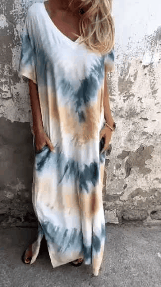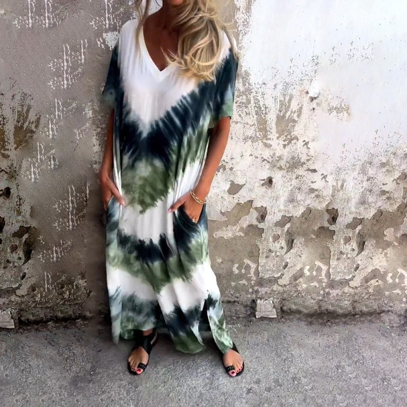 👗 🌸 Podkreśl swój wyjątkowy styl dzięki naszej luźnej sukience maxi z nadrukiem w kształcie litery V. 💃