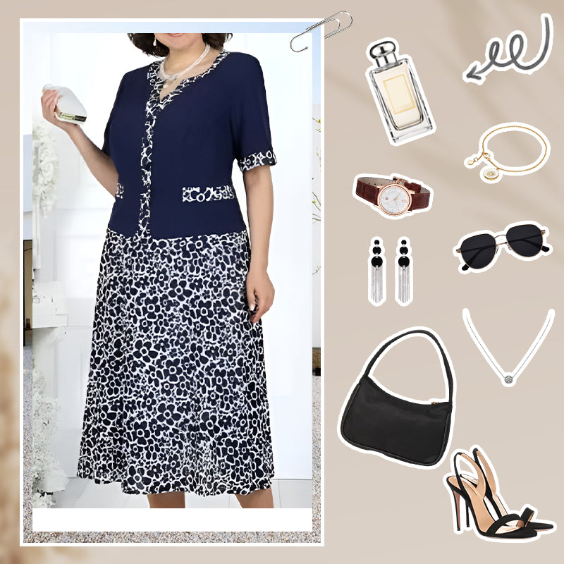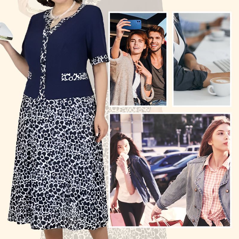 Zestaw zawiera: 1 × Damska elegancka imitacyjna dwuczęściowa sukienka z kwiatowym wzorem