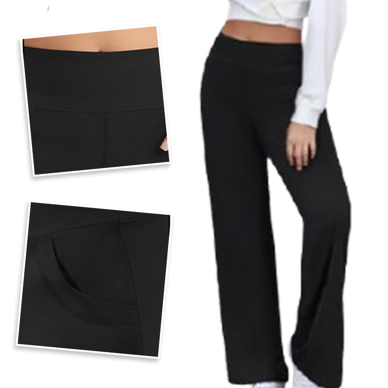 1 x damskie casualowe, proste, jednokolorowe spodnie do jogi z wysokim stanem i elastycznym materiałem