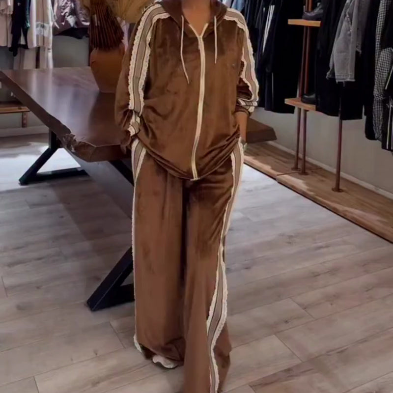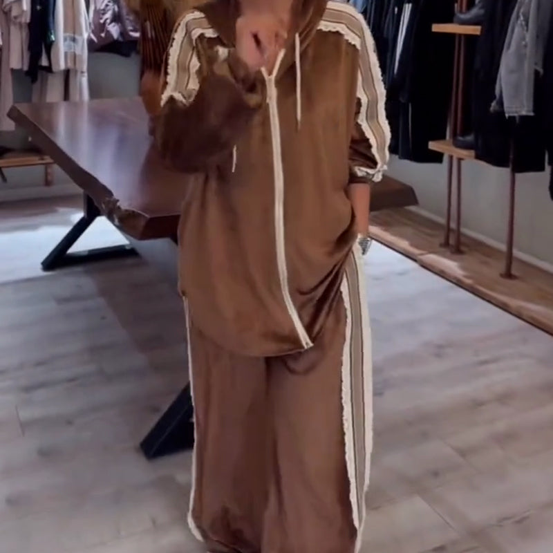 Пакетът включва: 1 * Дамски комплект с качулка и цип, 2 части, с дантелена украса