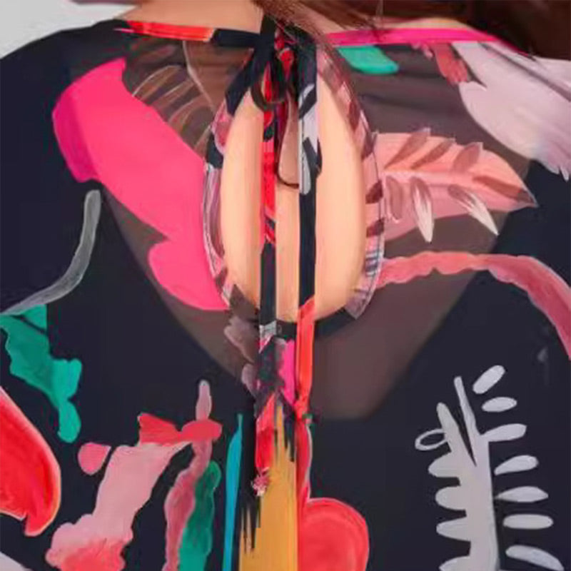 Pakiet zawiera:1* Lekka sukienka w kwiaty z długim rękawem i okrągłym dekoltem