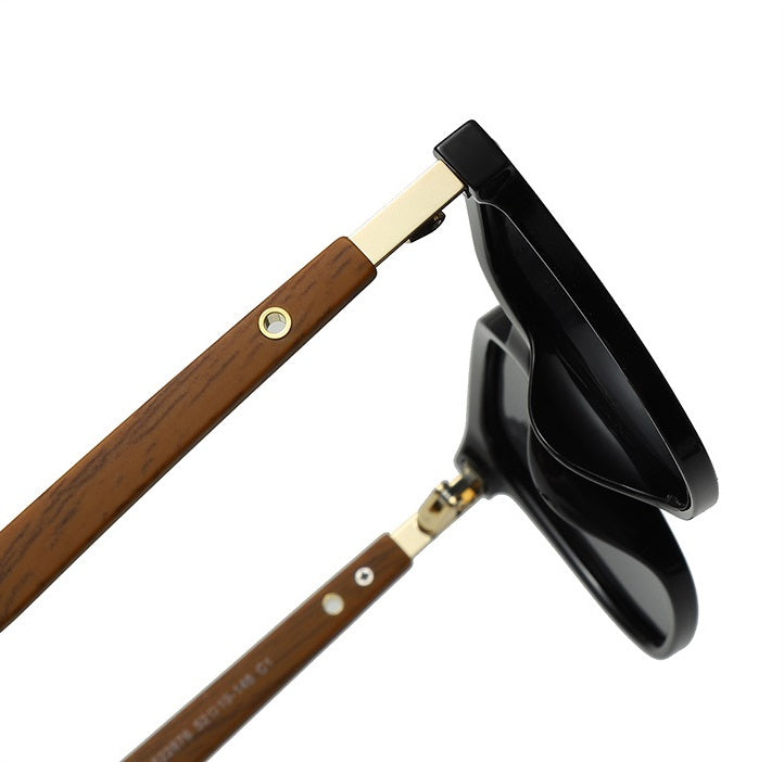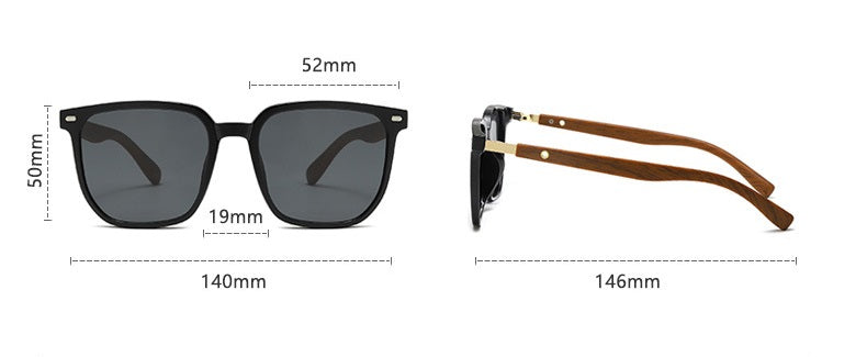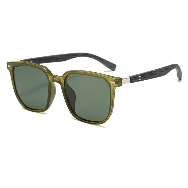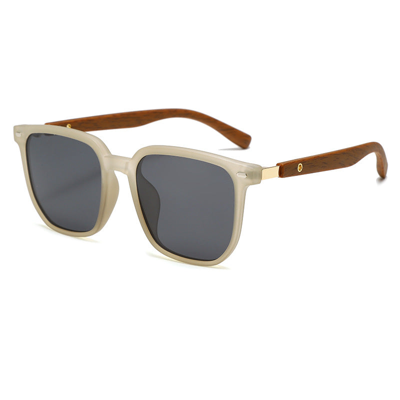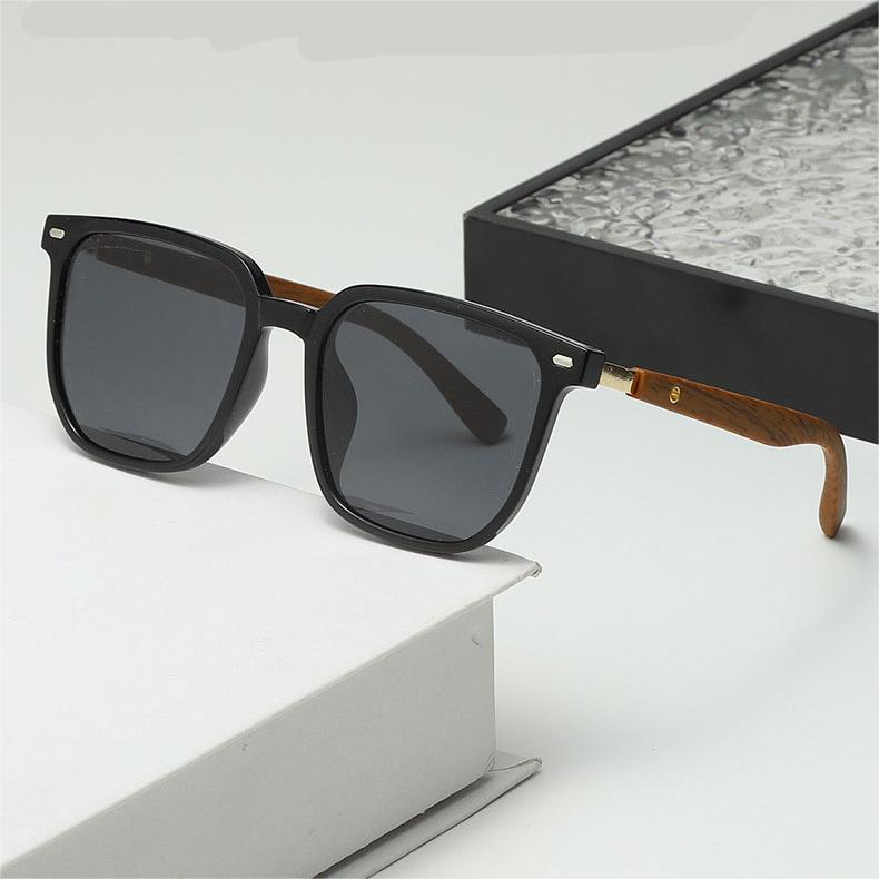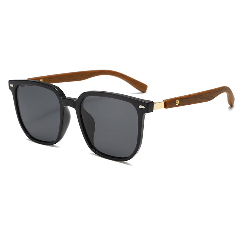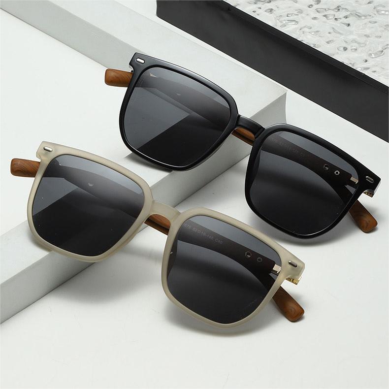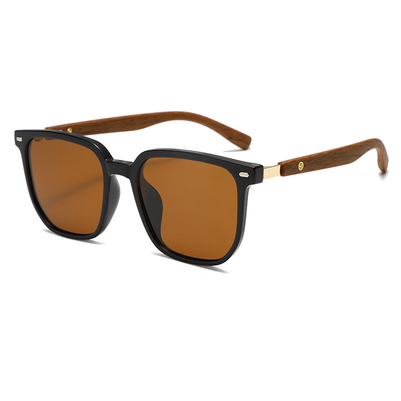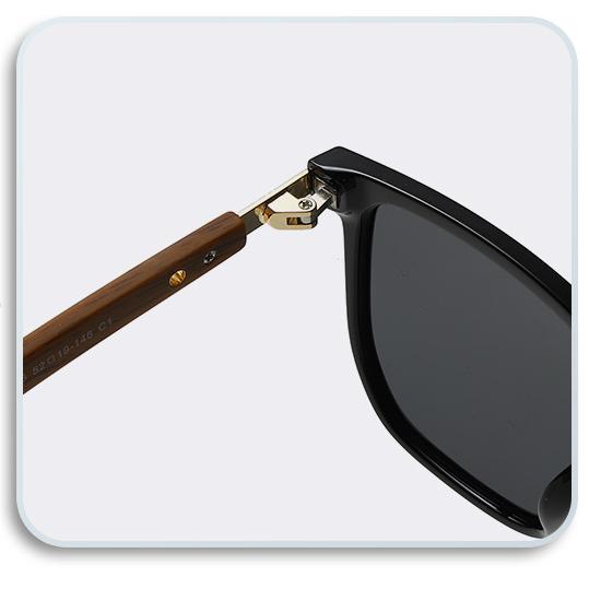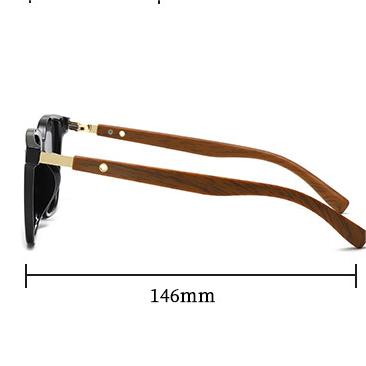 1* Klasyczne okulary przeciwsłoneczne z kwadratową drewnianą oprawką i soczewkami polaryzacyjnymi