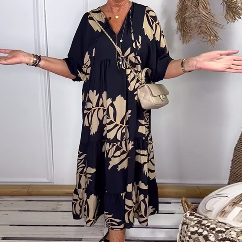 Luźny krój: Zaprojektowana w luźnym kroju, sukienka ta zapewnia maksymalny komfort i swobodę ruchów, zachowując jednocześnie elegancką sylwetkę, dzięki czemu nadaje się do każdego typu sylwetki.