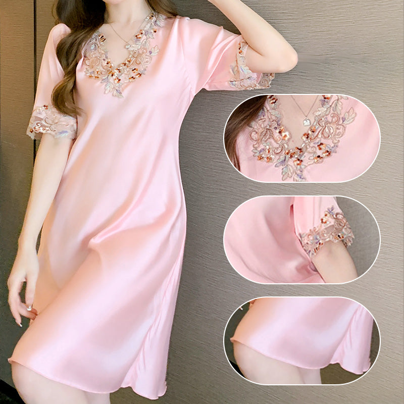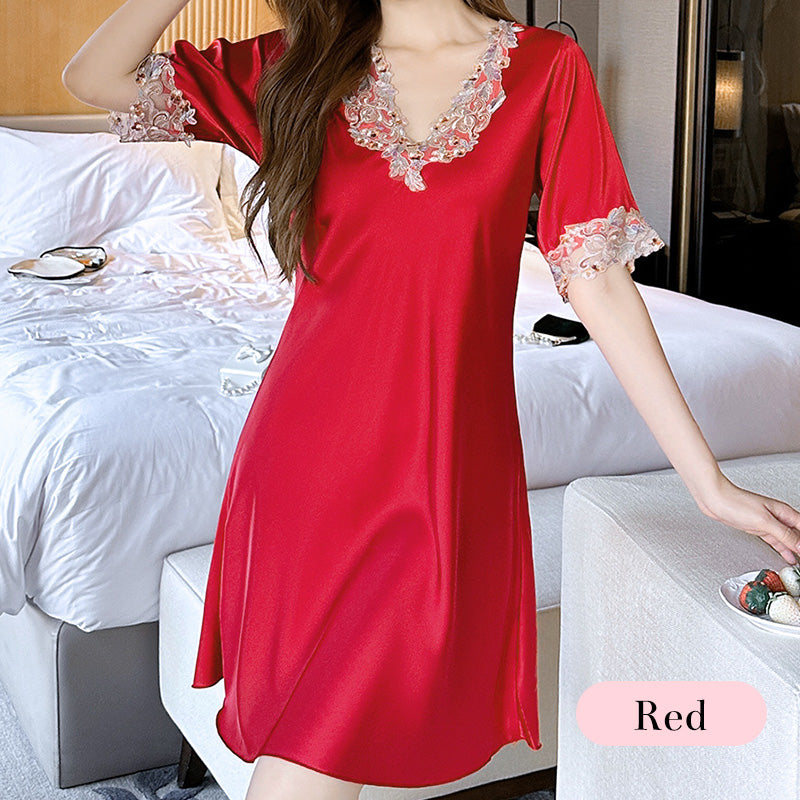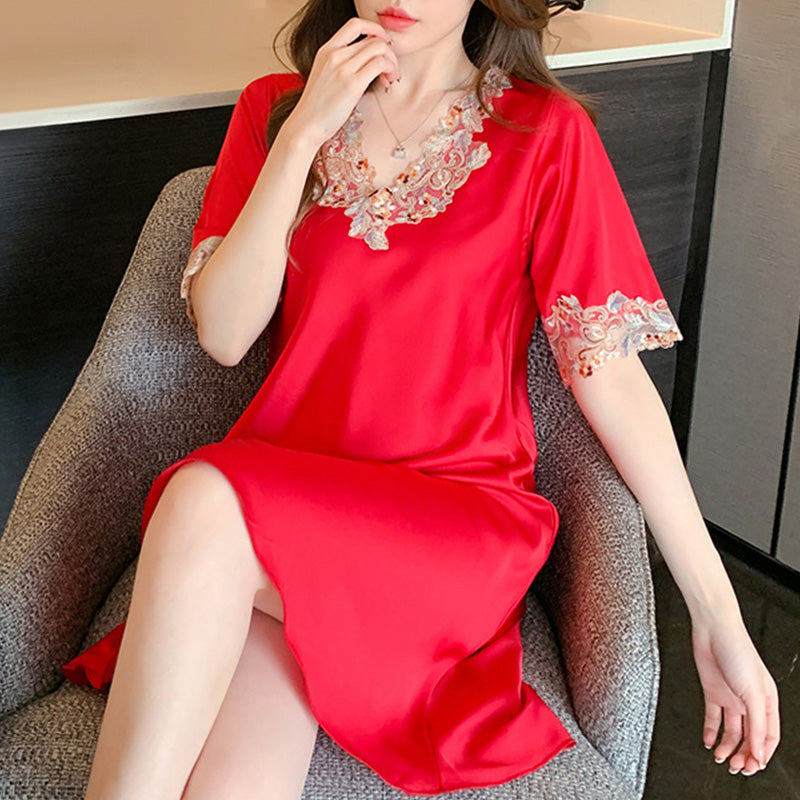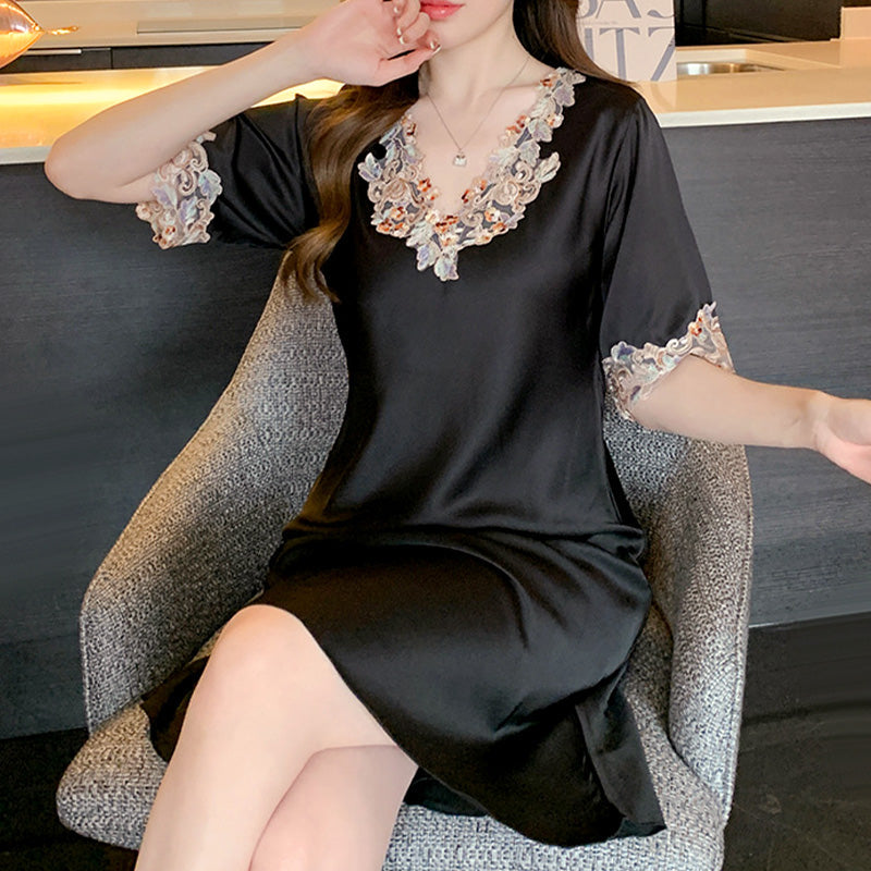 Pakiet zawiera:1*Koszula nocna z haftowaną koronką z dekoltem V