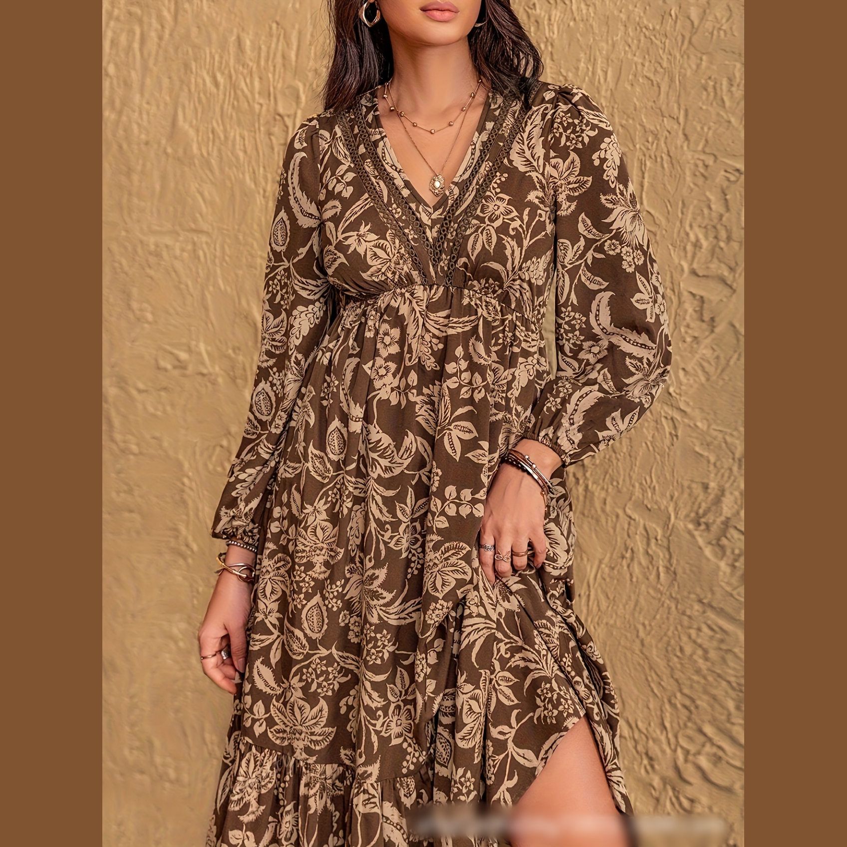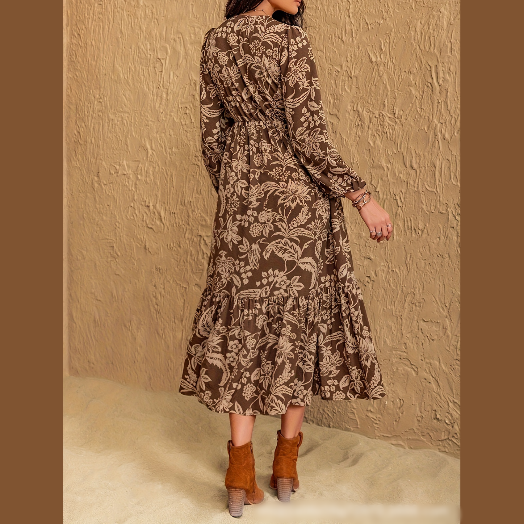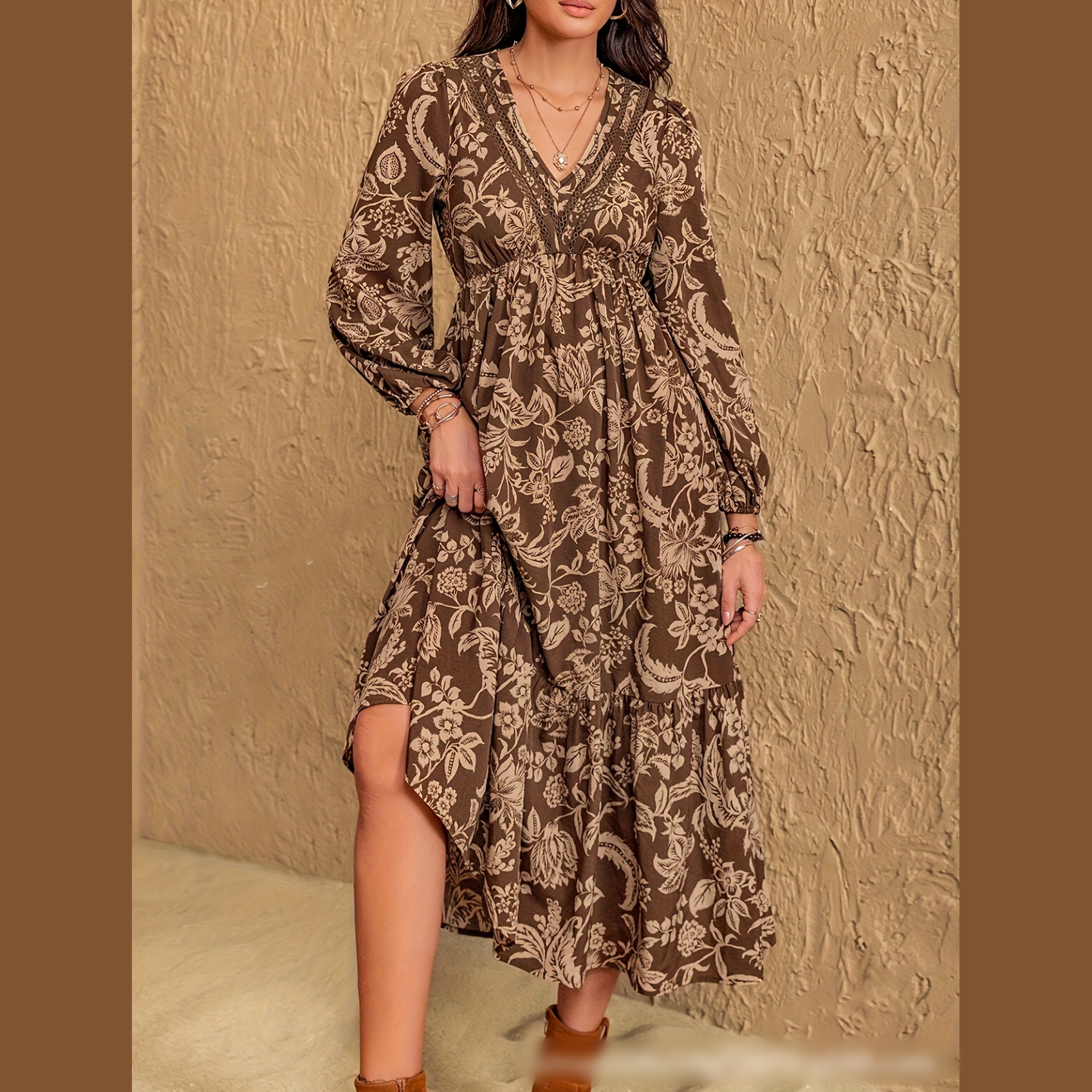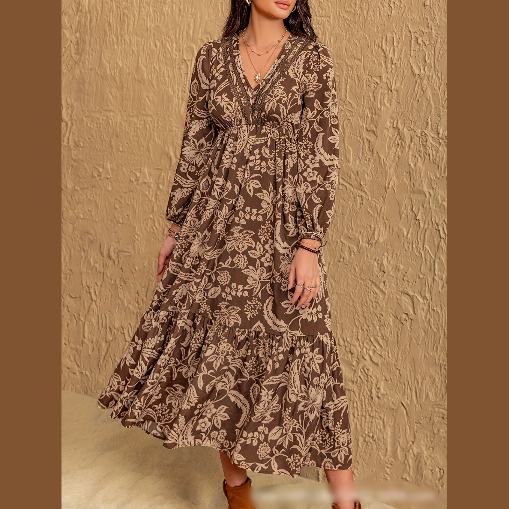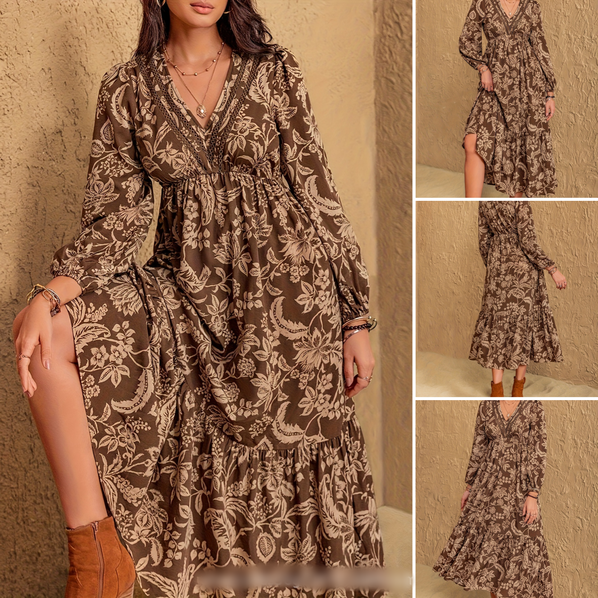 Zawartość opakowania: 1× damska sukienka w stylu bohemy w kolorze brązowym